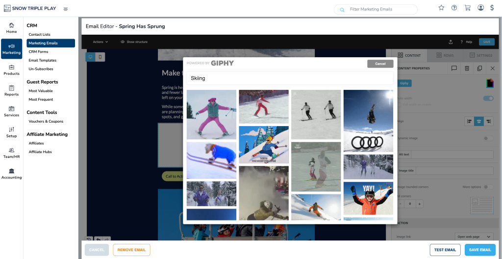 You can now search and insert GIFs directly within the email editor using Giphy. A built-in modal allows you to browse and search for GIFs without leaving the editor, then drop them directly into your email.