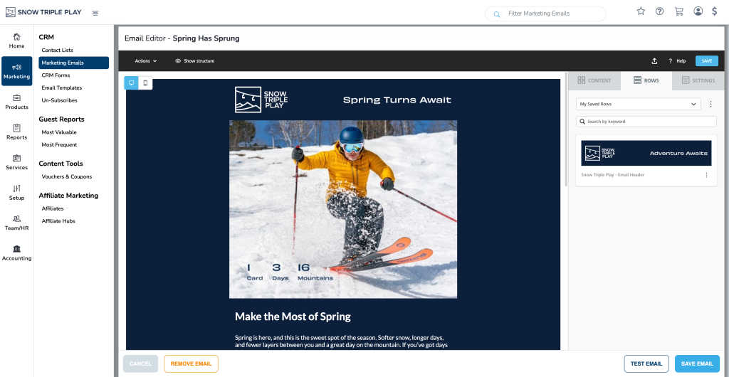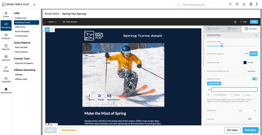 We’ve made a series of updates to the SnowCloud CRM email editor focused on making it faster to build, easier to reuse, and more flexible to design. These enhancements give you more control over how your emails look and behave, without adding complexity to your workflow.