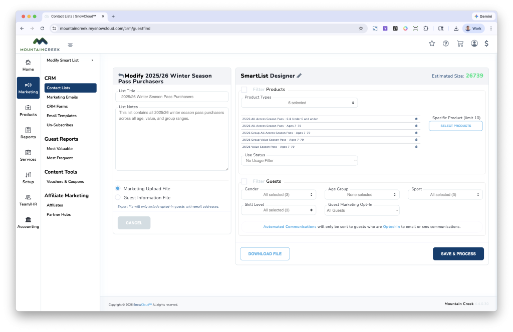 subsequent email dispatches, and guests who newly qualify for a list are
