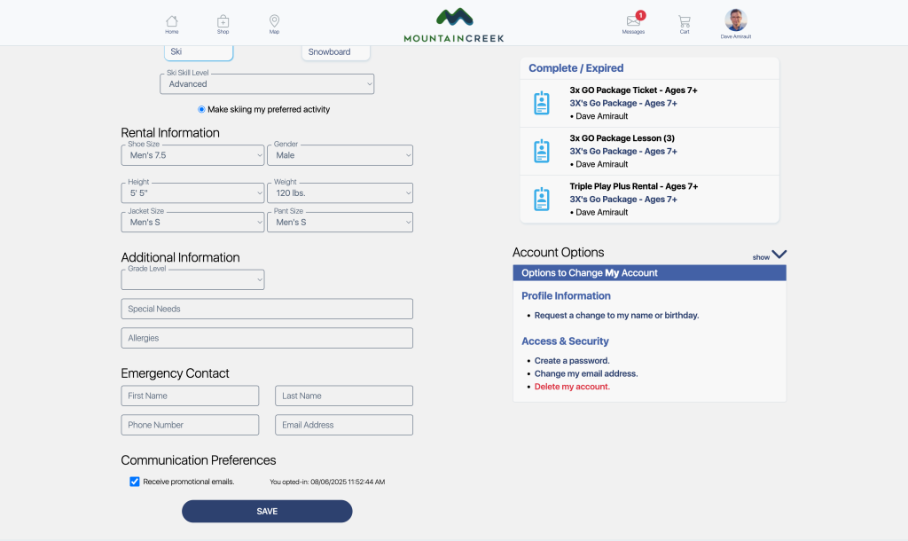 A new requirement option has been added to the Path to Purchase flow: when designated in product classification, purchasers must enter a “Contact Phone Number” during checkout for access, rental, and lesson products. The phone number is stored in the guest profile when required by product classification. This information is now searchable in both sale and guest lookups, ensuring accurate record matching and improved guest management.
